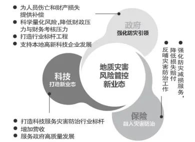 《全国地质灾害防治“十四五”规划》提出,要“探索构建市场主导、政策支持的地质灾害保险体系,引入社会力量有效应对灾害风险”。对此,中国地质调查局联合中国再保险集团、重庆市人民政府,开始探索构建“地质安全+金融保险”防灾减灾新业态,在加强地质灾害风险区划、精细化定量评估的基础上,以金融手段反哺地质灾害防治投入,致力于形成政府与社会共同管理、共同分担地质灾害风险新格局。